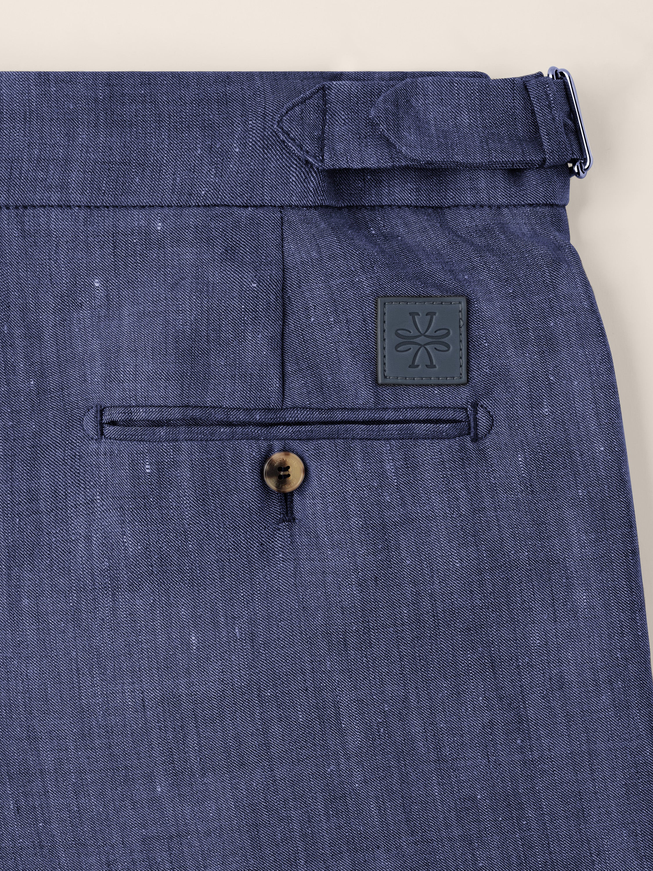 Pantalon chino Oliver coupe droite en batavia de lin et laine bleu chiné