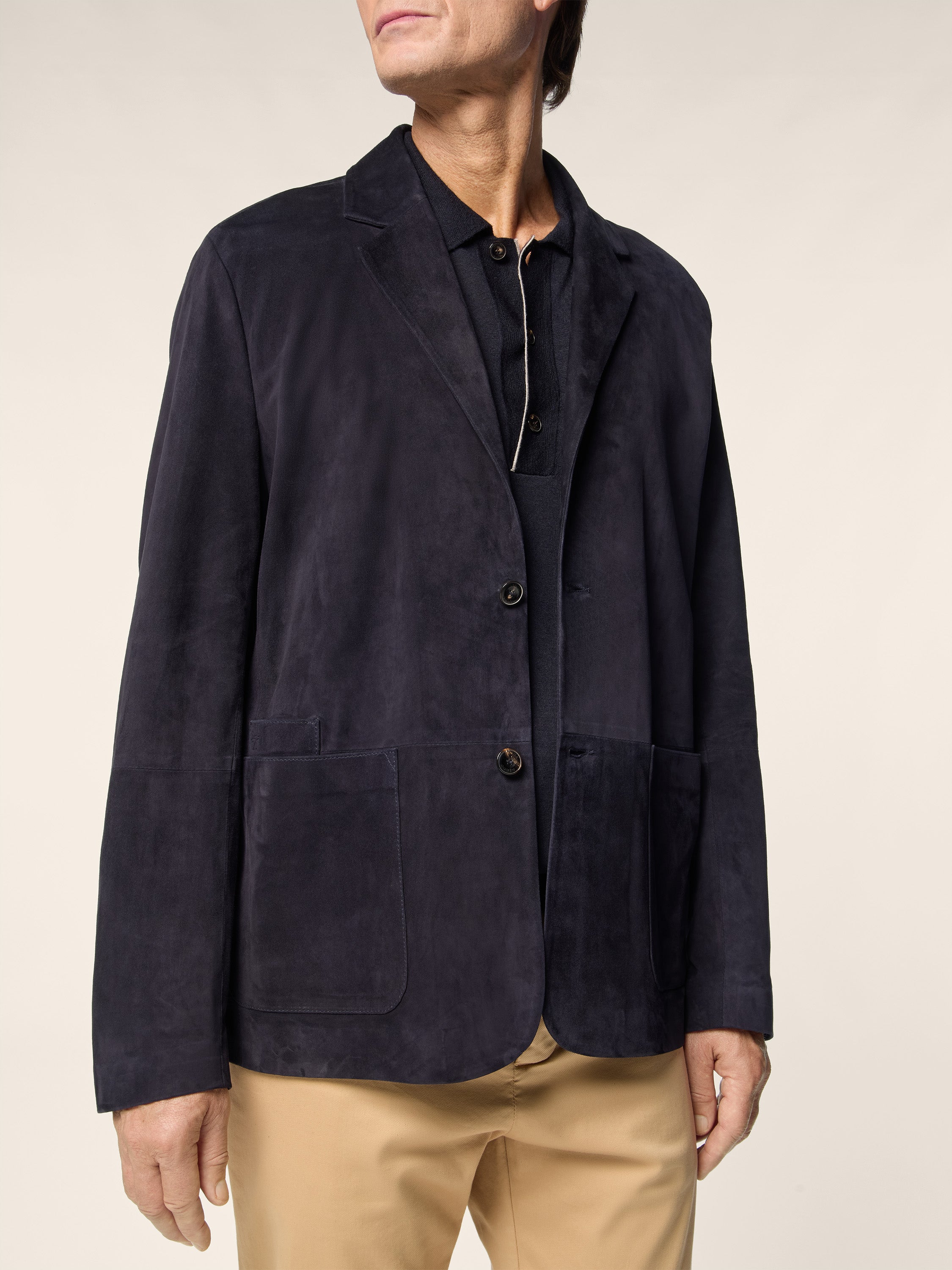 Overshirt in pelle scamosciata blu navy