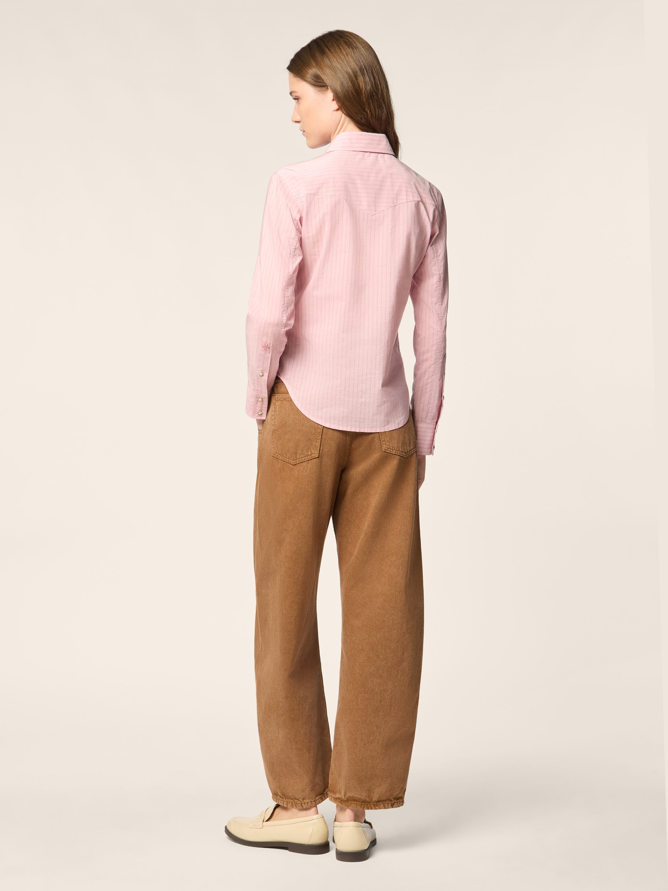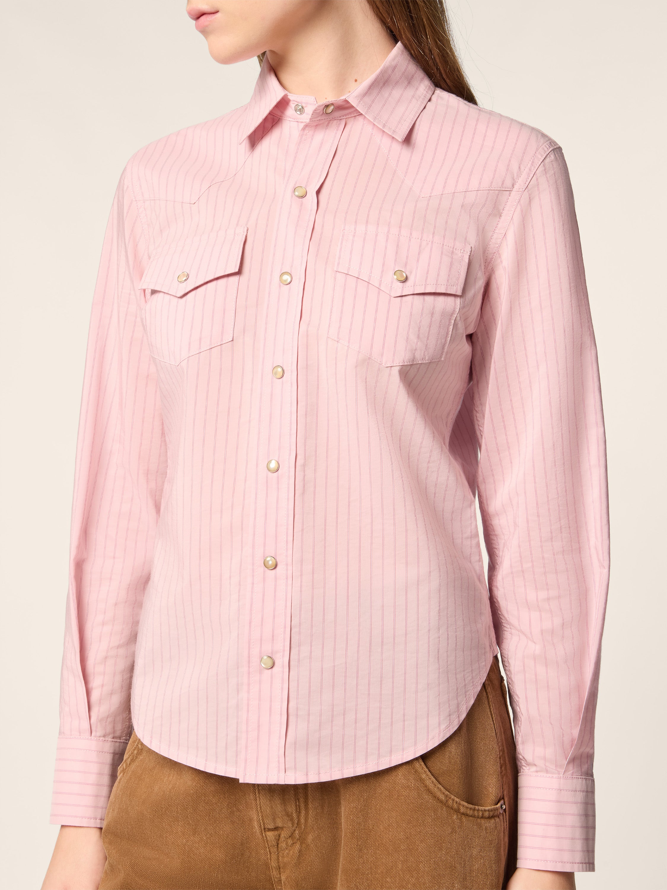 Camicia Western in popeline di cupro e cotone a righe malva e lampone