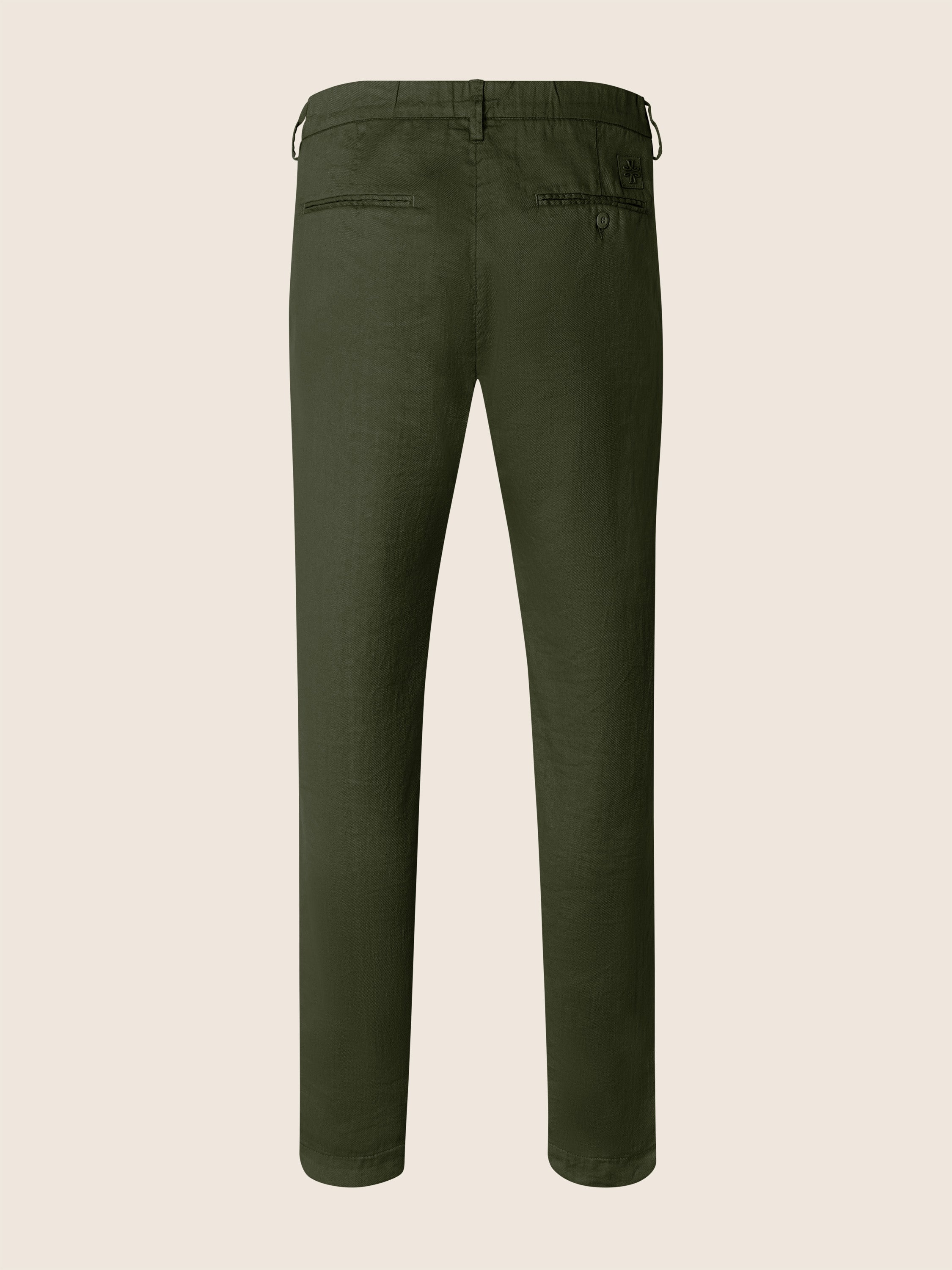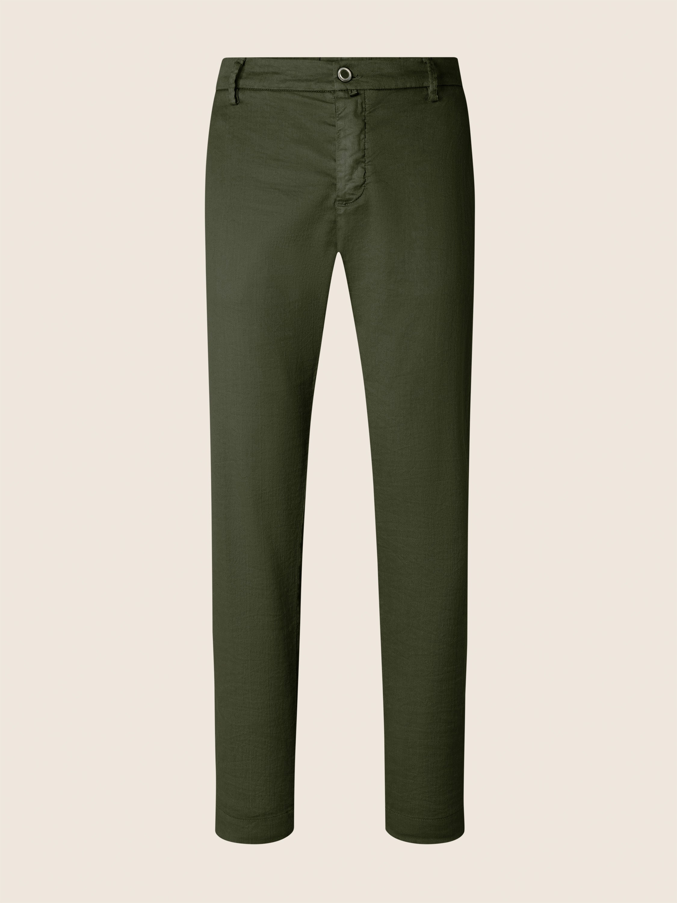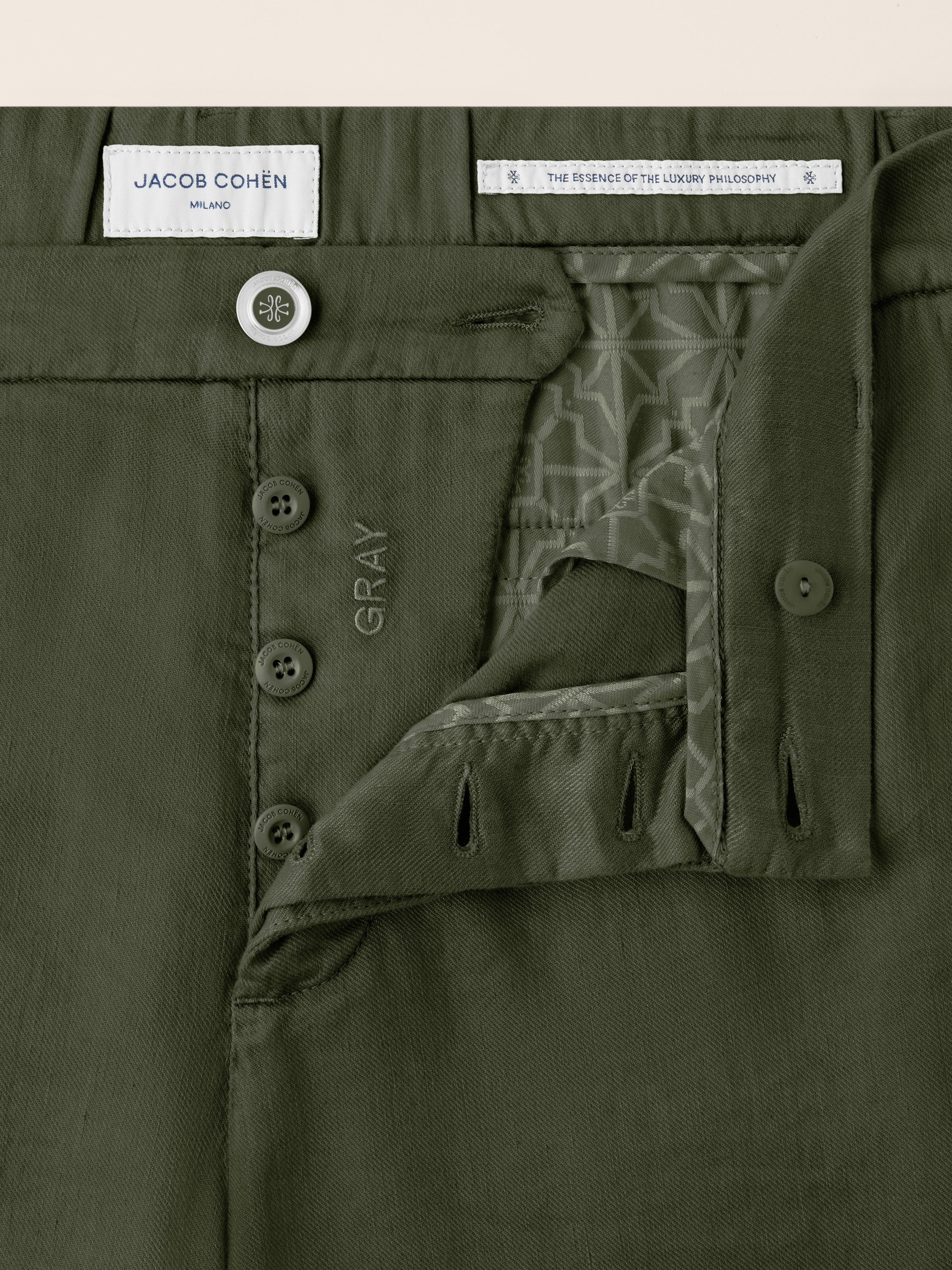 Pantalone chino Gray regular in gabardina stretch di cotone e lino verde loden