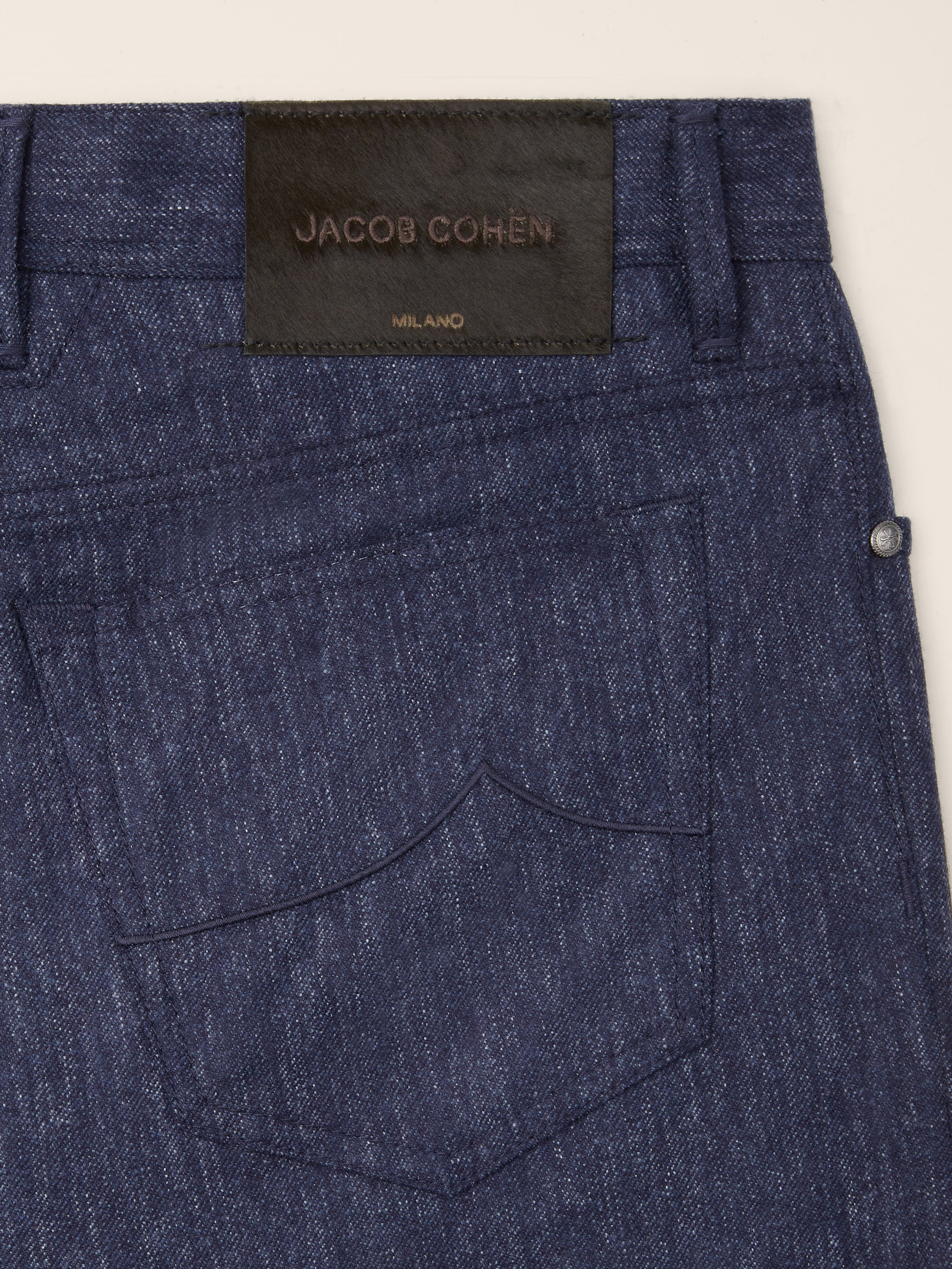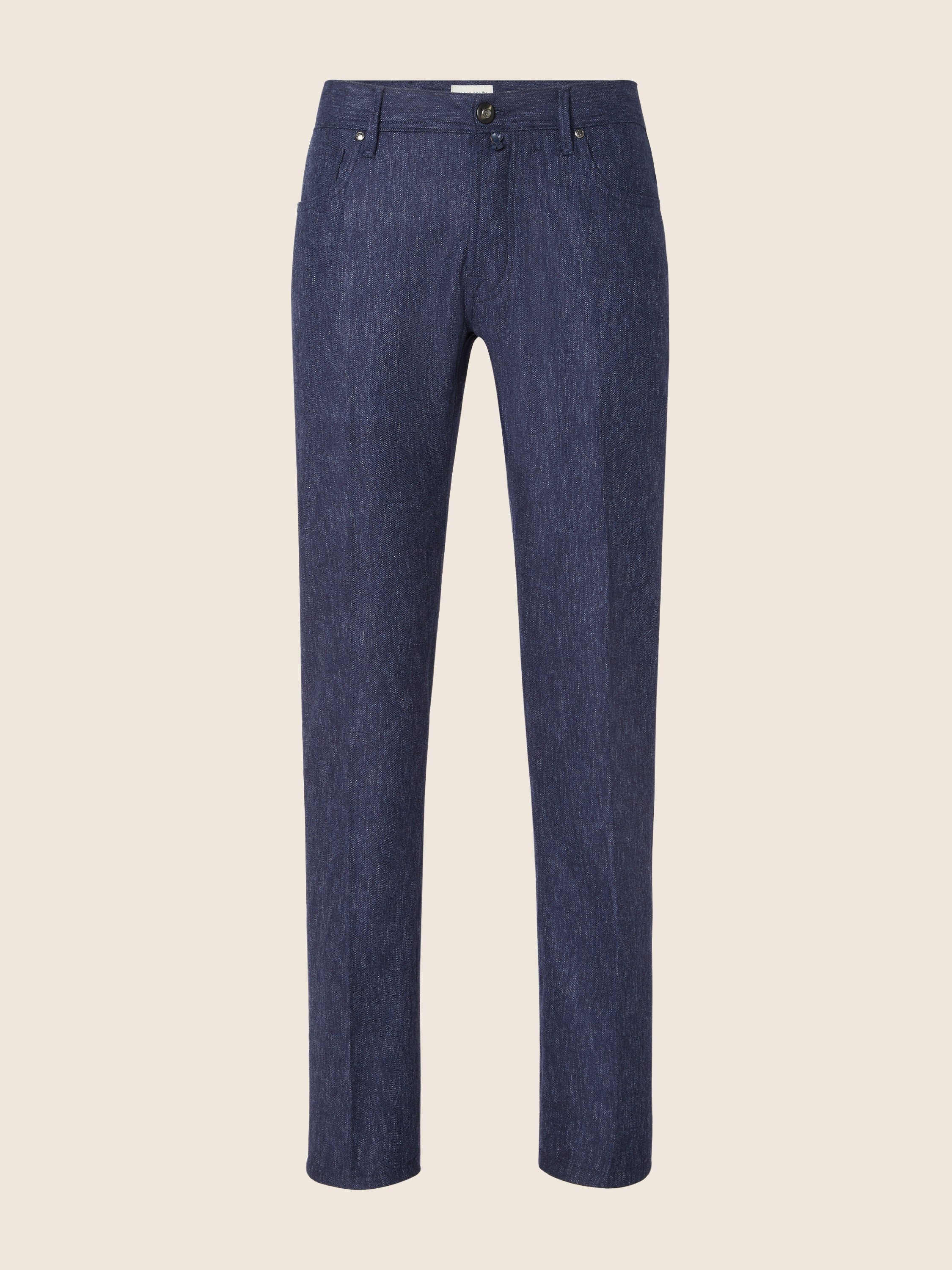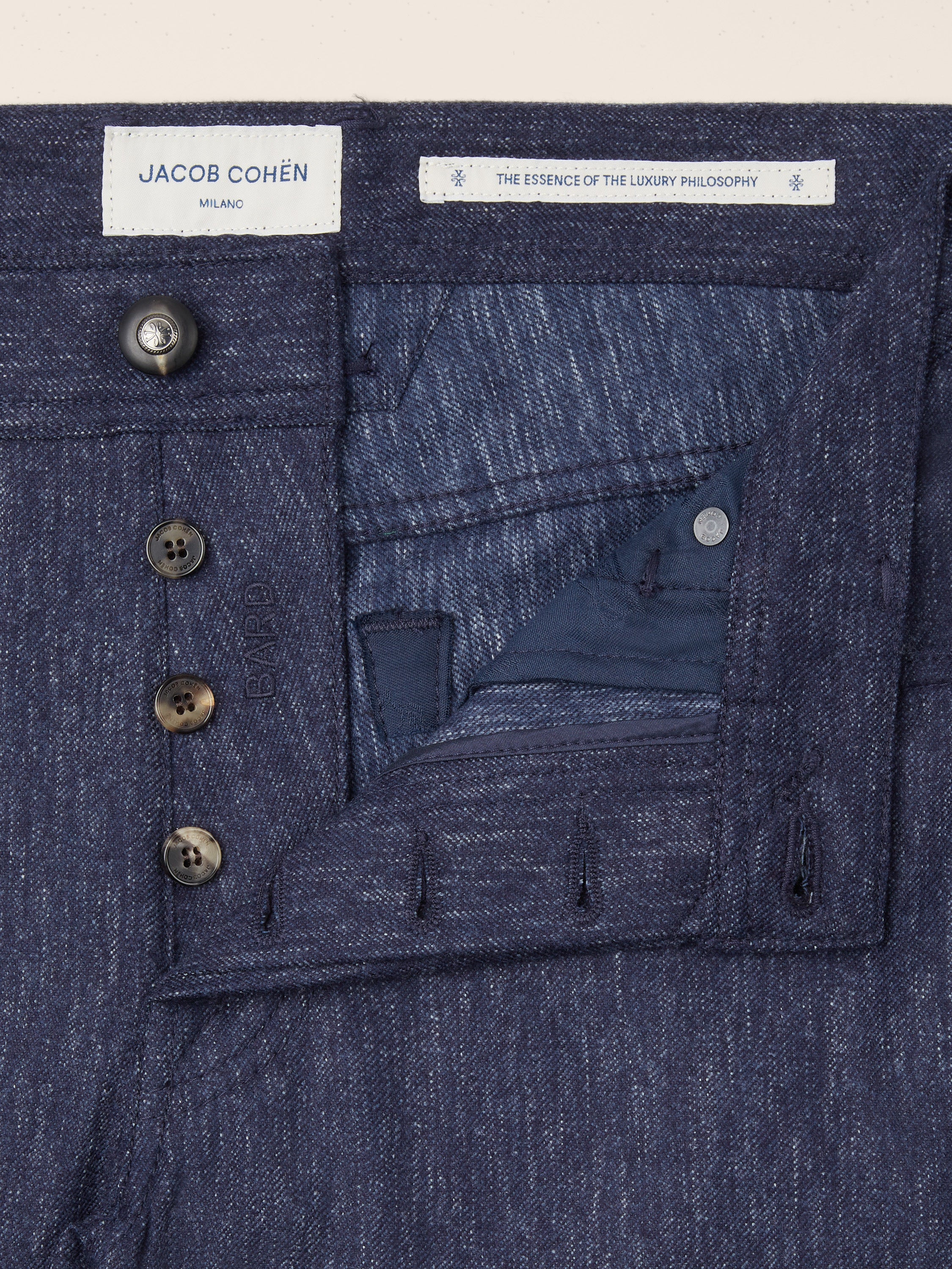Bard Regular-Slim 5 Pocket Pants in Blue Melange Wool Comfort Flannel | Jacob Cohën