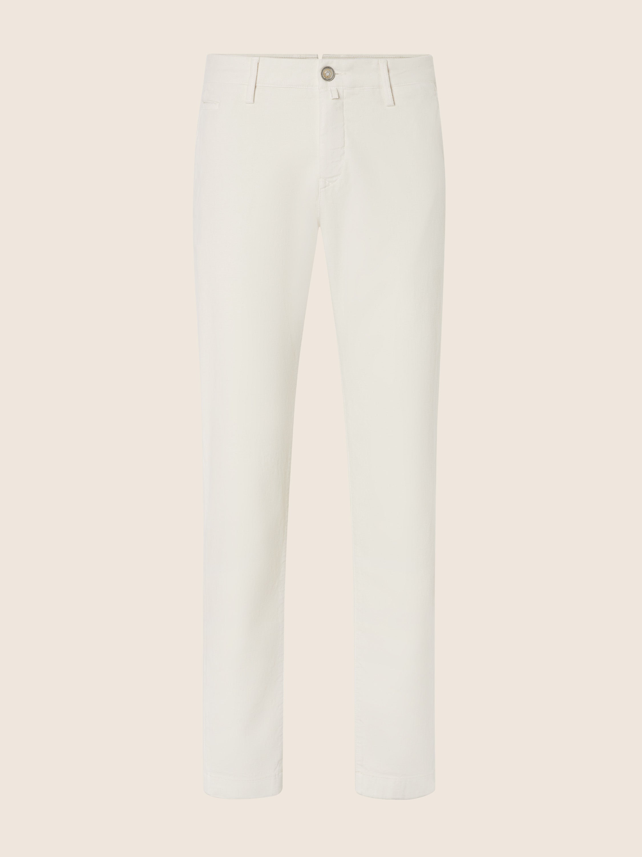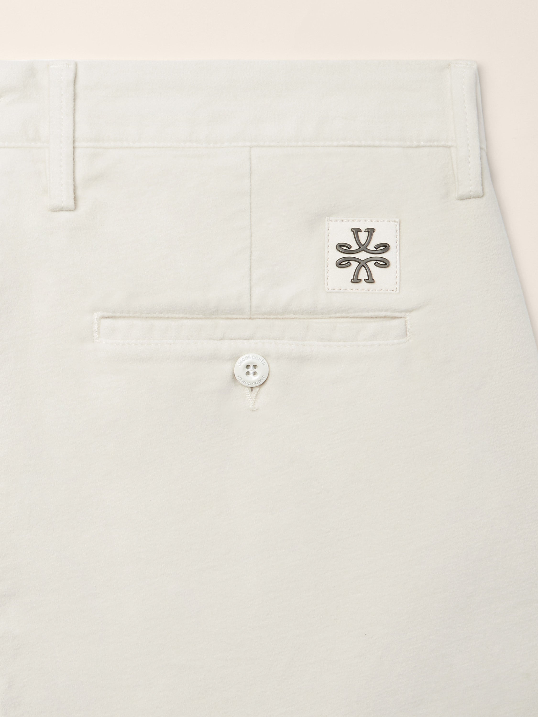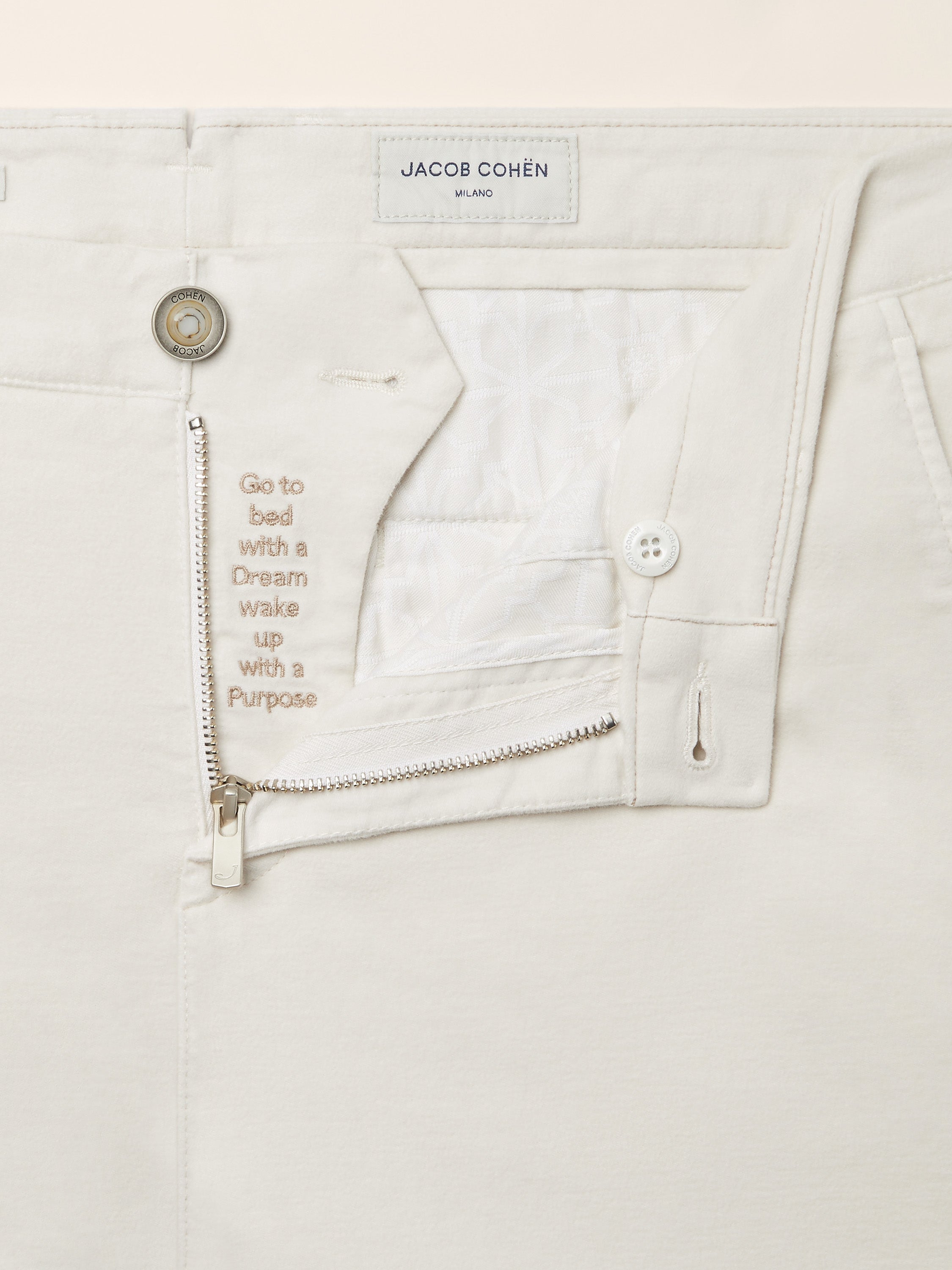 Bobby Slim Chino Pants in White Stretch Satin | Jacob Cohën