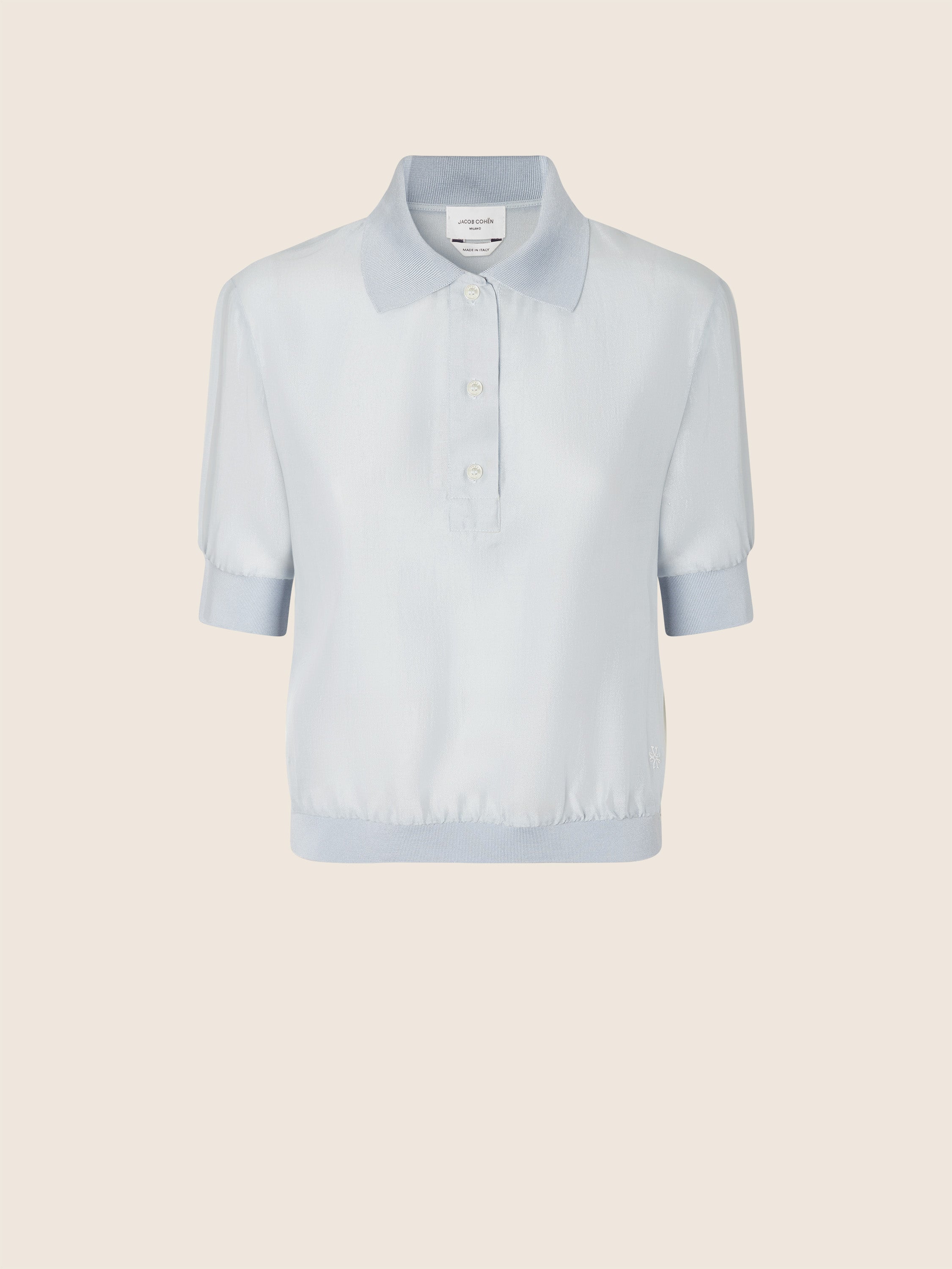 Cropped Polo in Light Blue Wool and Silk Chiffon
