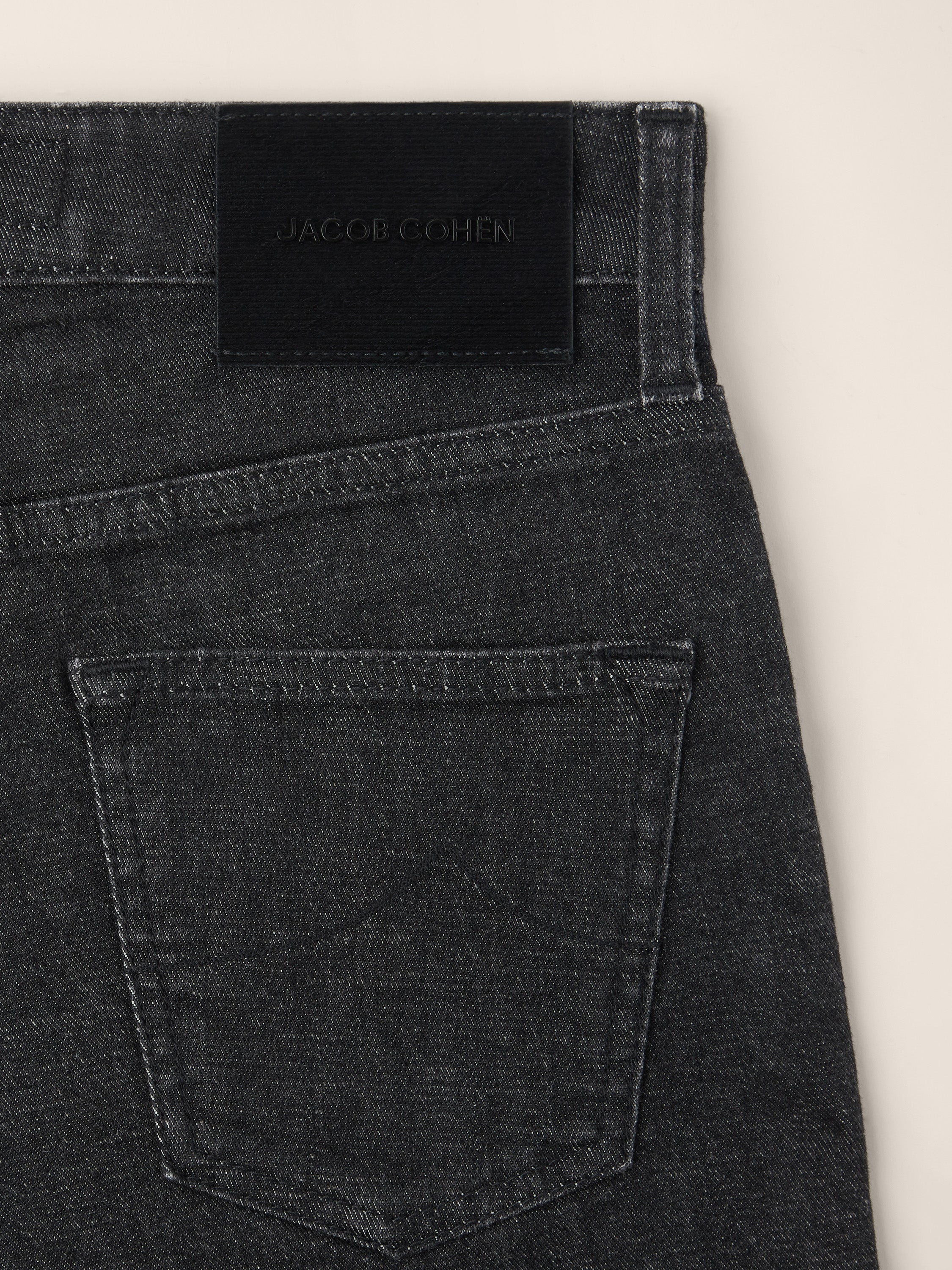 - Dark black power stretch denim with rinse wash (10 ounces)