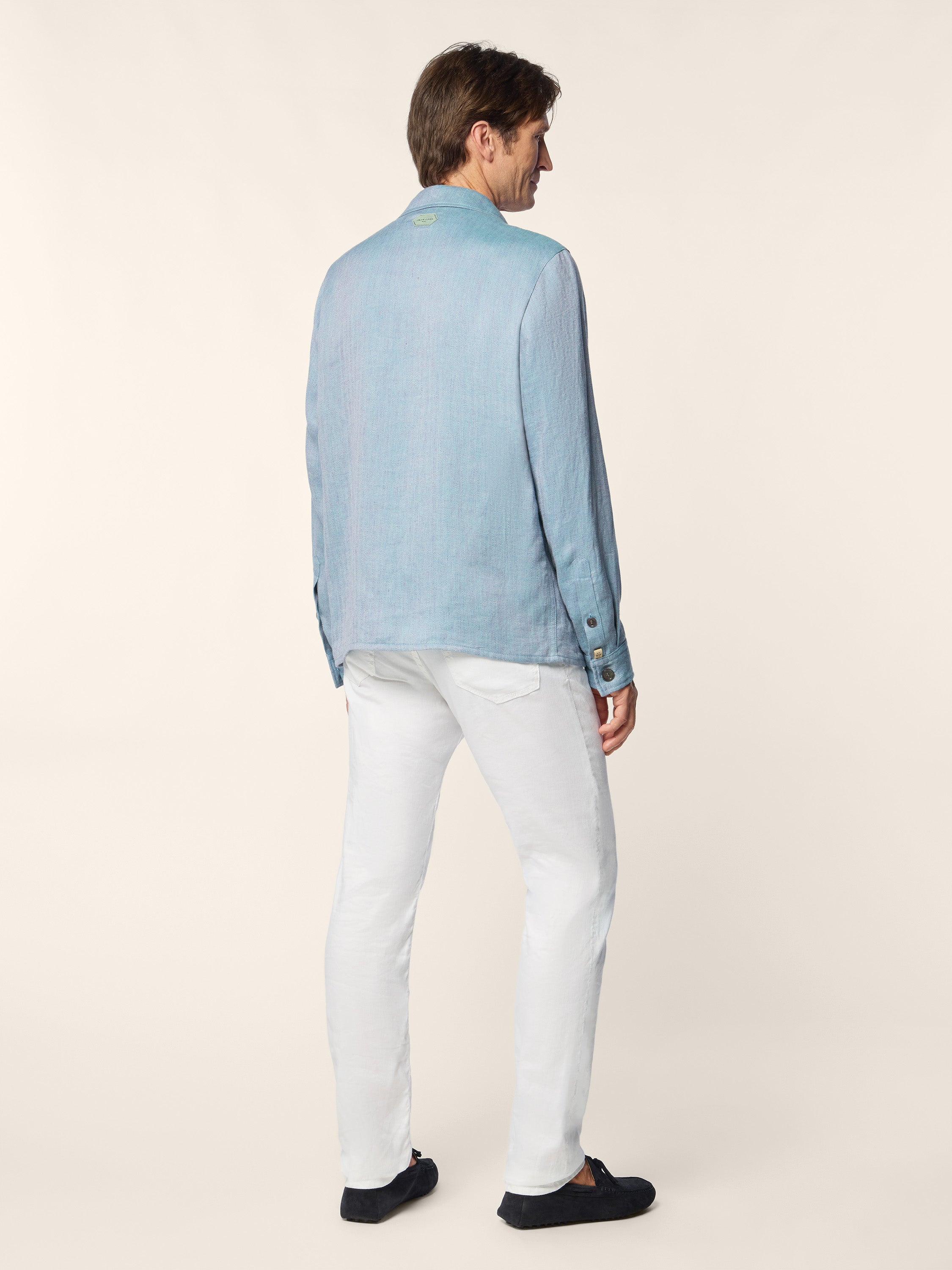 - Turquoise premium Solaro linen fabric, lightweight and subtly iridescent