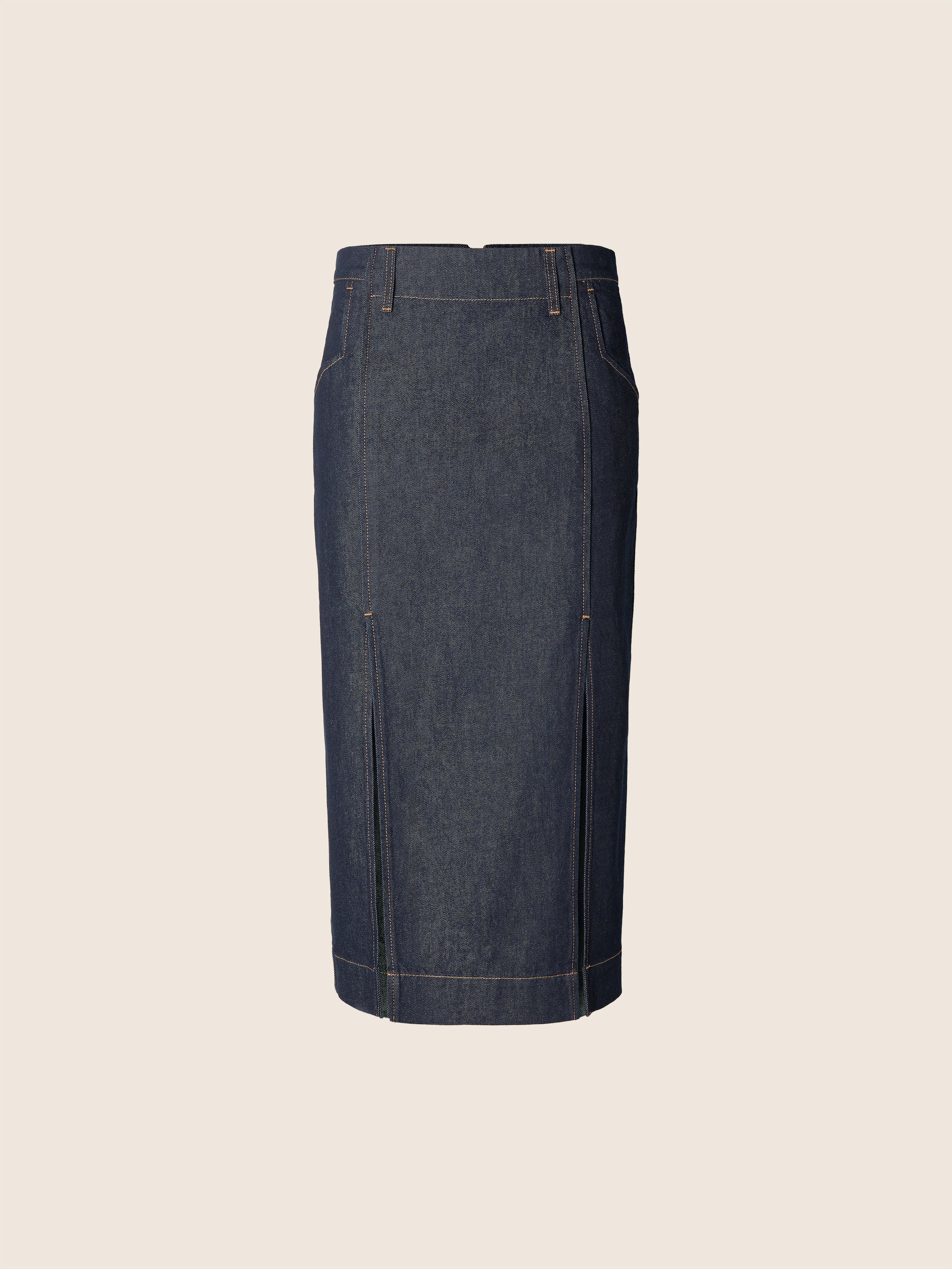 Skirt in Dark Blue Lightweight Denim with Rinse Wash