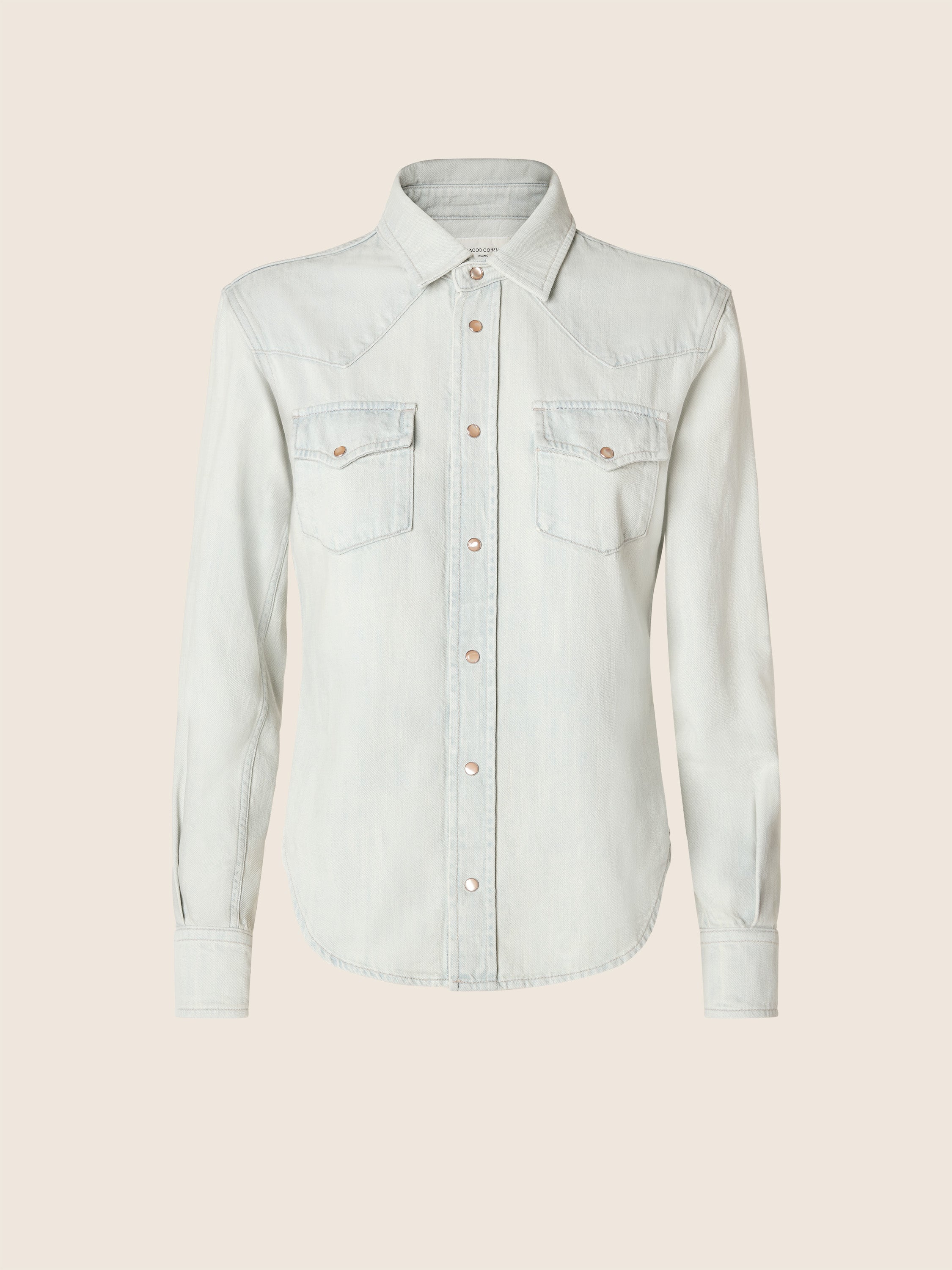 - Pointed yoke, patch pockets with flap and snap buttons on the chest