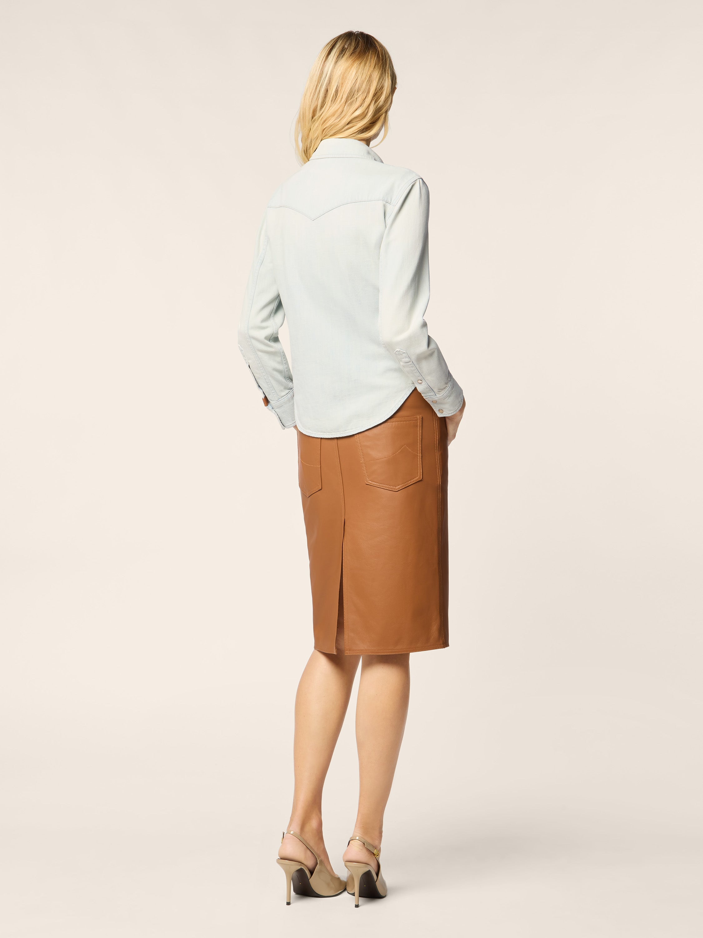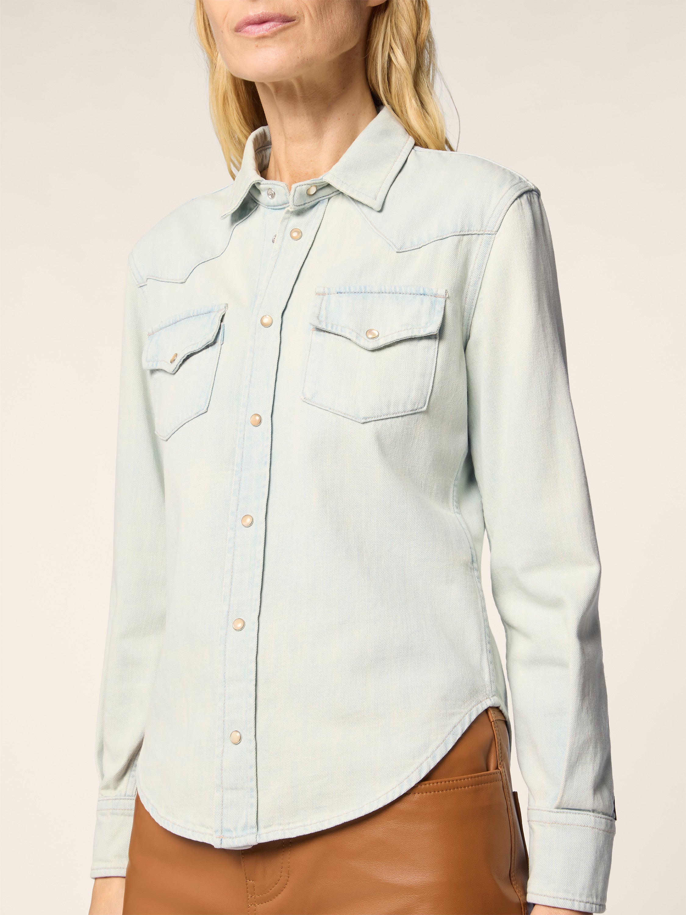 Western Shirt in Light Blue Lightweight Denim with Bleach Wash