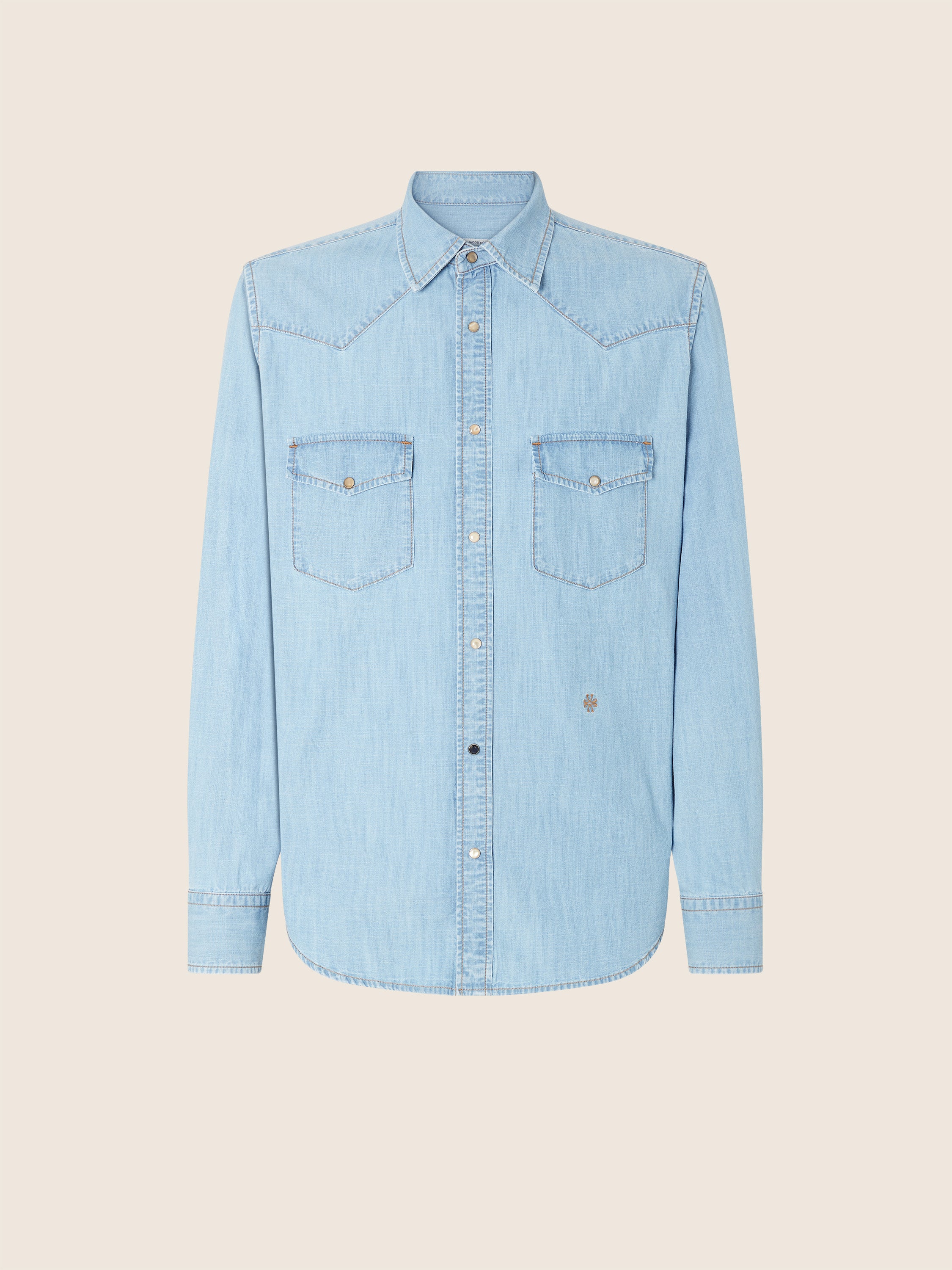 Western Shirt in Light Blue Lightweight Denim with Bleach Wash